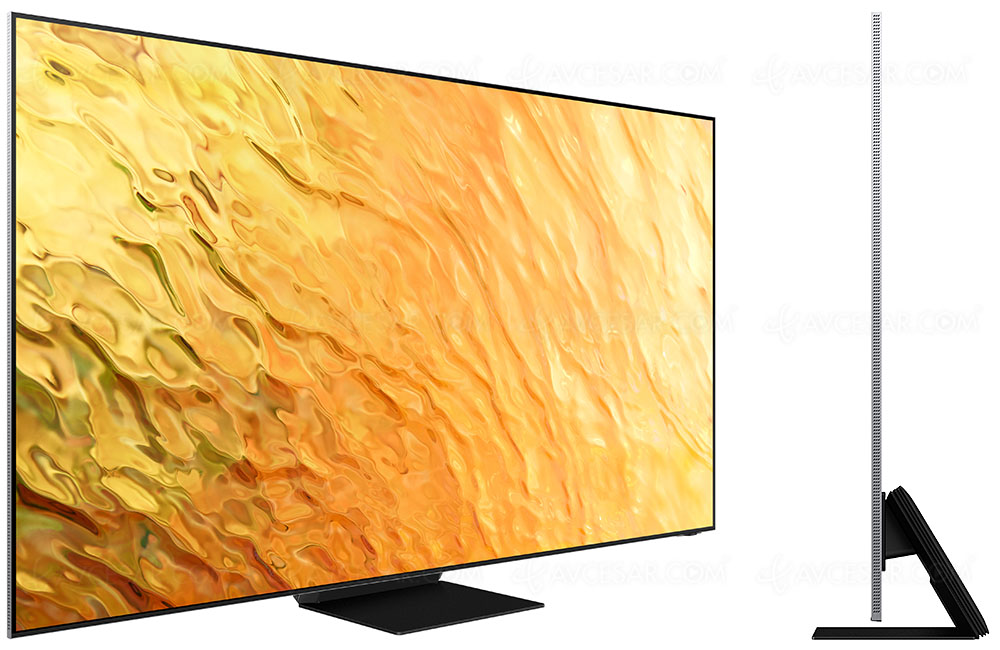 In addition, in addition to the almost total absence of edges, the Samsung QN800B are also extremely thin, 15 mm over their entire surface, and the foot is made of a sheet of metal with a thickness of 4 millimeters. And, like their predecessors, the QN800B TVs are perfectly straight. Once fixed to the wall, the rendering is simply incredible.
