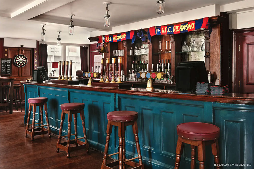 In the excellent series Ted Lasso (AppleTV+), coach Lasso, his assistants and the players of the AFC Richmont sometimes meet at The Crown & Anchor pub to regain their strength and/or be copiously insulted by ( nice) delirious supporters. It's all the atmosphere of the series and the AFC Richmont that you can find by spending a night there.