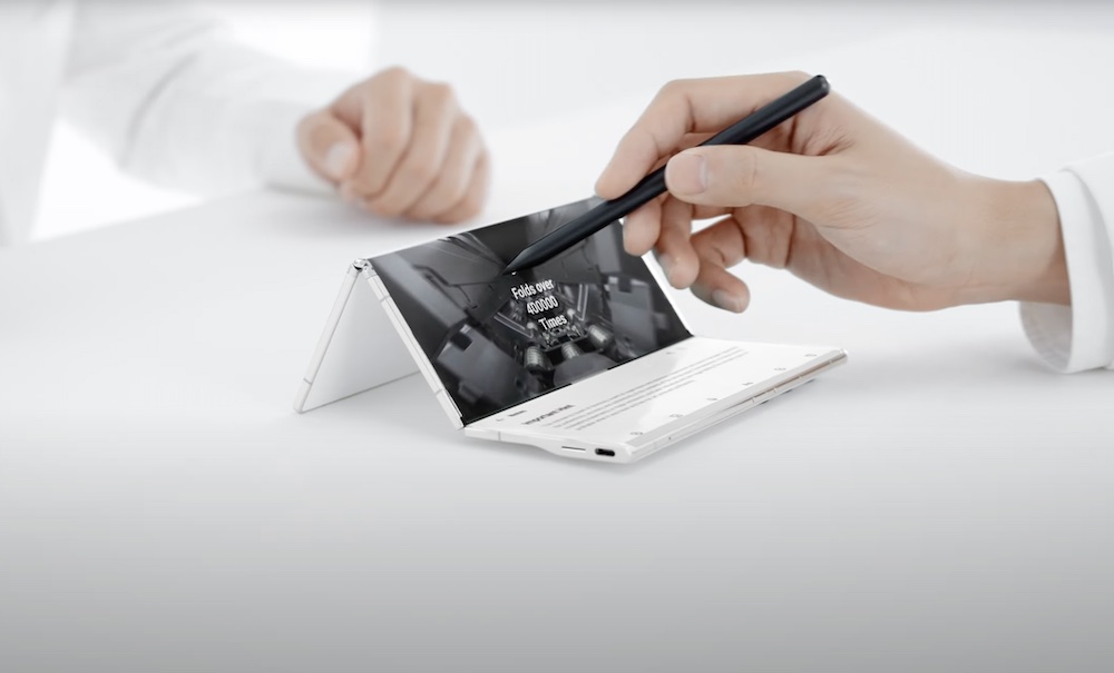 The Chinese manufacturer also claims to have pushed the boundaries of engineering with the smallest battery cover, which is just 0.25 millimeters. The prototype can be used in several modes, including mini-laptop, media viewing or "tent" (see photo above) for translation between two users on either side of the screen. No details are provided on the processor or other components, or on whether such a product will be launched. But its very existence gives clues as to where the foldable smartphone market could be heading in the future.