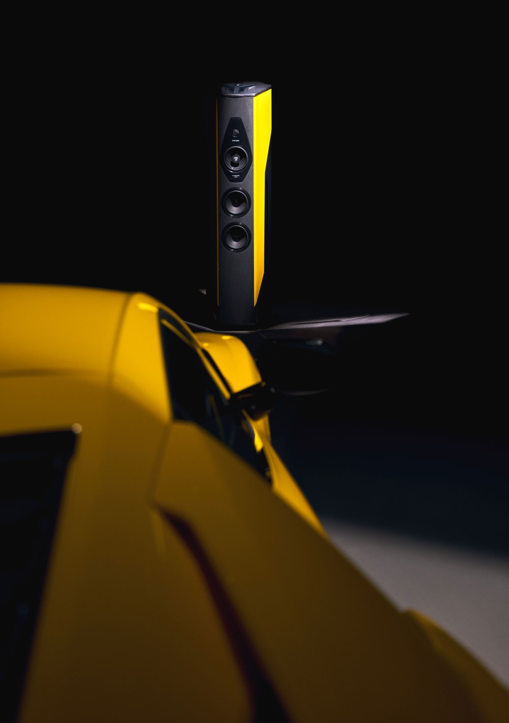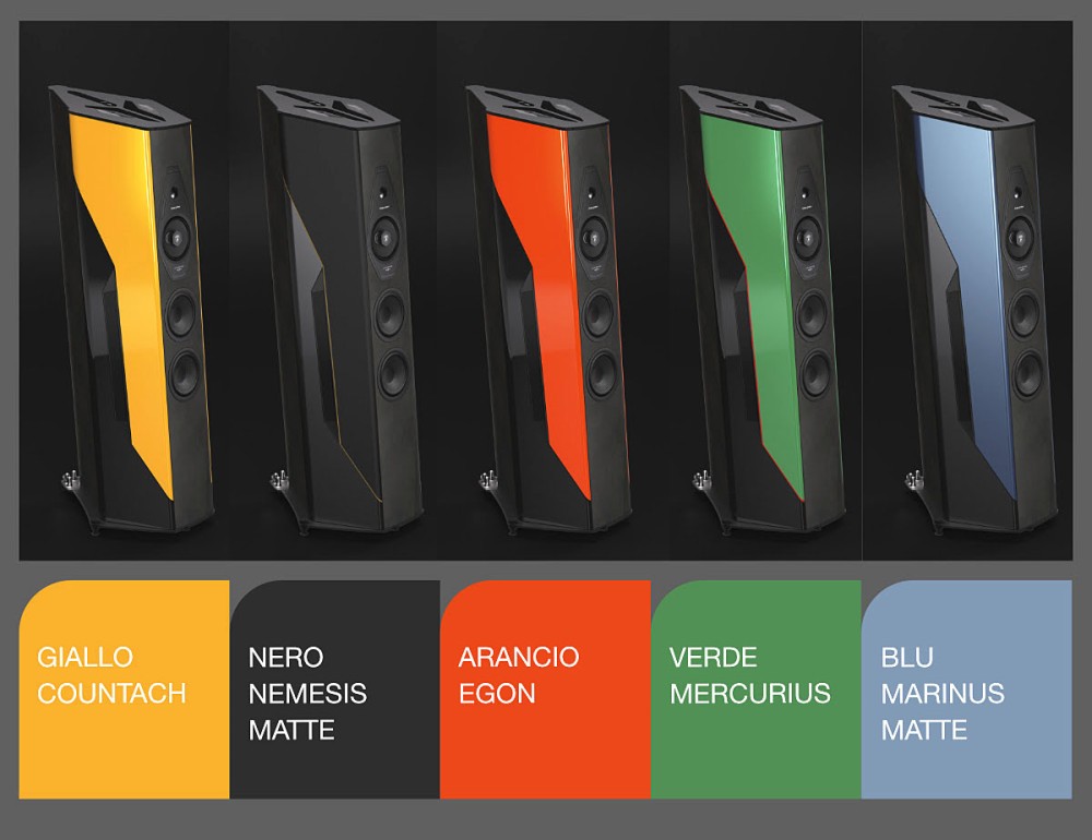 A luxurious model since it is only 50 units produced and sold at a recommended price of €130,000 (per pair, thank goodness). The speaker naturally adopts Lamborghini's aesthetic codes, with a five-sided design, carbon fiber details, Corsa-Tex panels and the car brand's logo. Each unit is hand-assembled and tuned by ear in Italy by Sonus Faber craftsmen. Five colors are available: Giallo Countach (yellow), Arancio Egon (red), Blu Marinus Matte (blue), Verde Mercurius (green), and Nero Nemesis Matte (black).