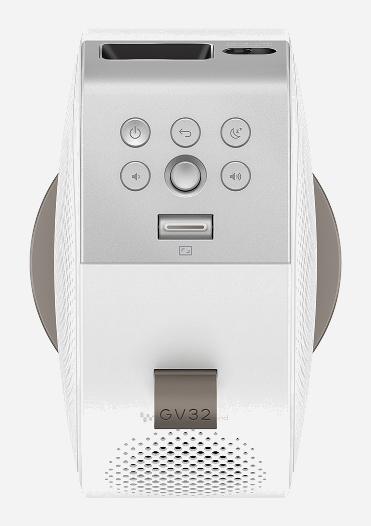 The GV32P from BenQ, one of the latest additions to the brand's ultraportable projector range, comes in an identical form factor to the BenQ GV50P. In addition to its aesthetics, the GV32 also adopts all the main specifications of the GV50P, modulo two major differences: an LED light source instead of a blue laser, and the absence of a battery.