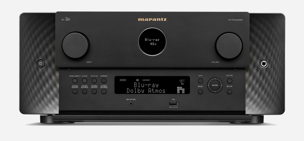 Connectivity includes seven certified [abc]HDMI[/abc] 2.1 [abc]CEC[/abc] inputs, plus three outputs transparent to [abc]Deep Color[/abc], [abc]xvYCC[/abc], [abc]1080p/24[/abc] and 3D, [abc]Ultra HD[/abc] [abc]4K[/abc] or [abc]8K[/abc] signals. In addition, there are two composite inputs, one component input, two optical inputs, two coaxial inputs, six stereo RCA inputs, one phono input, two USB host ports (one on the front panel), one Ethernet port, and one RS-232 port. Plus, of course, there are the 2.0 Pre-Outs (zones 2 and 3), 11.4 RCA Pre-Outs, and balanced 15.2 XLR Pre-Outs, all already mentioned. An Eco mode is also included, significantly improved to consume much less power at reasonable listening levels. Finally, after retrieving the product's IP address, it's even possible to control and configure it via a web browser from a PC. Available immediately in black finish only. Suggested retail price: €4,000. Key features of the Marantz AV30: • Model: 11.4 • Inputs: 7 HDMI 2.1 CEC 2.3 certified inputs, 2 optical inputs, 2 coaxial inputs, 6 stereo RCA inputs (one on the front panel), 1 phono input, 2 USB host ports (one on the front panel), 1 Ethernet port, and 1 RS-232 port • Outputs: 3 HDMI 2.1 outputs (one with eARC), 1 stereo RCA Zone 2 output, 1 stereo RCA Zone 3 output stereo, 1 Pre-Out 11.4 RCA/1 Pre-Out 11.4