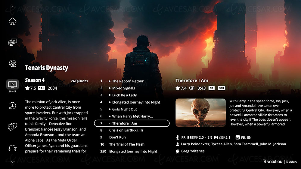 R_video, better than the benchmark Zappiti? The R_video application is also available (at a price of €5.99/month or €50/year, free for owners of an R_volution player): subtitle downloads, all kinds of icons to define and label content, posters of films signed by R_video (the R_volution database contains approximately 18,000 posters at the time of writing), parental controls, user interface customization, playback of a film soundtrack while browsing, management of 24 Hz and 23.976 Hz signals…