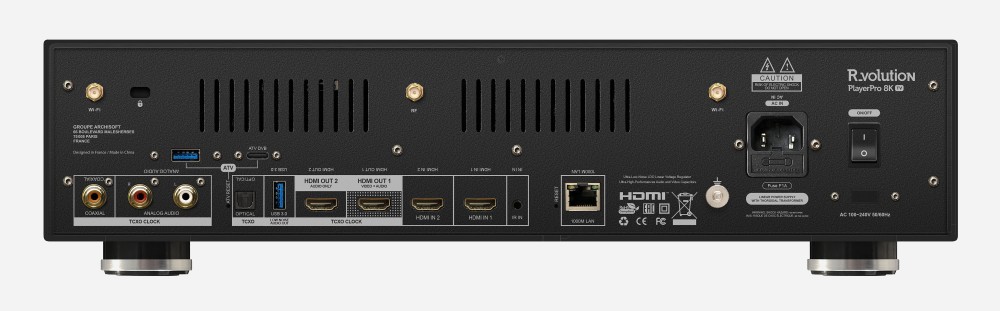 UPDATE: The RAM and Flash memory of the R_volution PlayerPro 8K TV are identical to those of the R_volution PlayerPro 8K, contrary to what was initially announced. The above news item has been corrected. UPDATE: The suggested retail price of the R_volution PlayerPro 8K TV is now known. The above news item has been updated. Key features of the R_volution PlayerPro 8K TV: • Type: Media player + Android TV box • Processor: Amlogic S928X-K/J (Quad Core ARM A55 at 2.0 GHz + Quad Core ARM A76 clocked at 1.9 GHz + additional core for system needs) + secondary S905X4-K chip • RAM: 4 GB • Storage: 32 GB • Codec compatibility: AC3, DTS:X Pro, MPEG, AAC, HEAAC, LPCM, ALAC, AIFF, WAV, MQA, VSELP, FLAC, APE Ogg/Vorbis (up to 192 kHz/24 bits), [abc]HEVC[/abc], [abc]VP9[/abc], Iso 3D [abc]BD[/abc], Iso BD, BDMV, [abc]MKV[/abc], M4A, Mpeg-TS, Mpeg-PS, [abc]M2TS[/abc], [abc]Vob[/abc], [abc]AVI[/abc], Mov [abc]MP4[/abc], QT, [abc]WMV[/abc], Iso DVD, Video [abc]TS[/abc], [abc]SACD[/abc] Iso, [abc]AVC-HD[/abc]