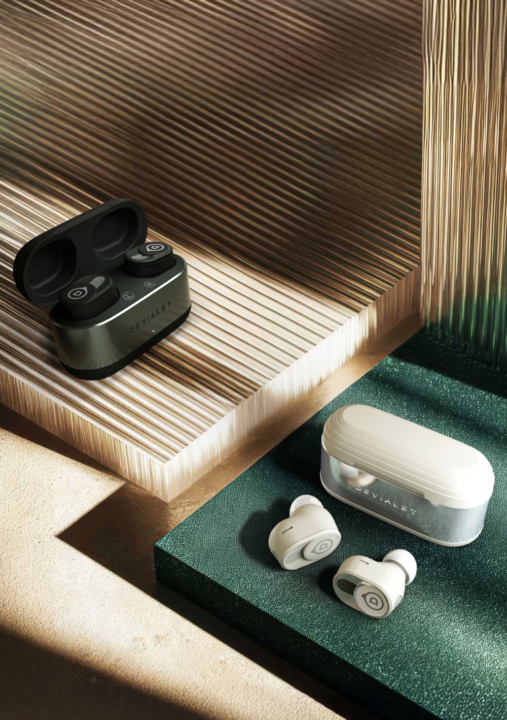 Light Pearl and Deep Forest are two new colors for the Devialet Gemini II earphones. Devialet explains: "These two new colors are part of a harmonization of the Devialet range," the French manufacturer explains. Unveiled at the launch of the Devialet Phantom Ultimate speaker, the Light Pearl finish, inspired by ceramic biscuits, offers an ultra-matte, soft, and elegant white hue. The Deep Forest finish, meanwhile, displays a dark and organic hue revealing subtle green undertones.