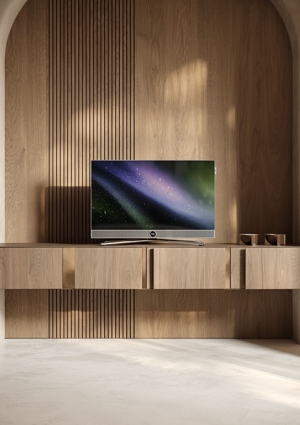Loewe Vega LCD TV, designed in Germany. Aesthetics remain the cornerstone of Loewe's products. The Vega TVs are no exception, featuring a brushed aluminum frame and a premium speaker grille. They come with a rotating chrome metal table stand. As always with this manufacturer, cable management is completely concealed at the rear for a flawless 360-degree aesthetic. Numerous mounting options (floor, wall, ceiling) are available. Availability: March. Suggested retail prices: €1,500 for the Loewe Vega 32, €1,700 for the Loewe Vega 43.