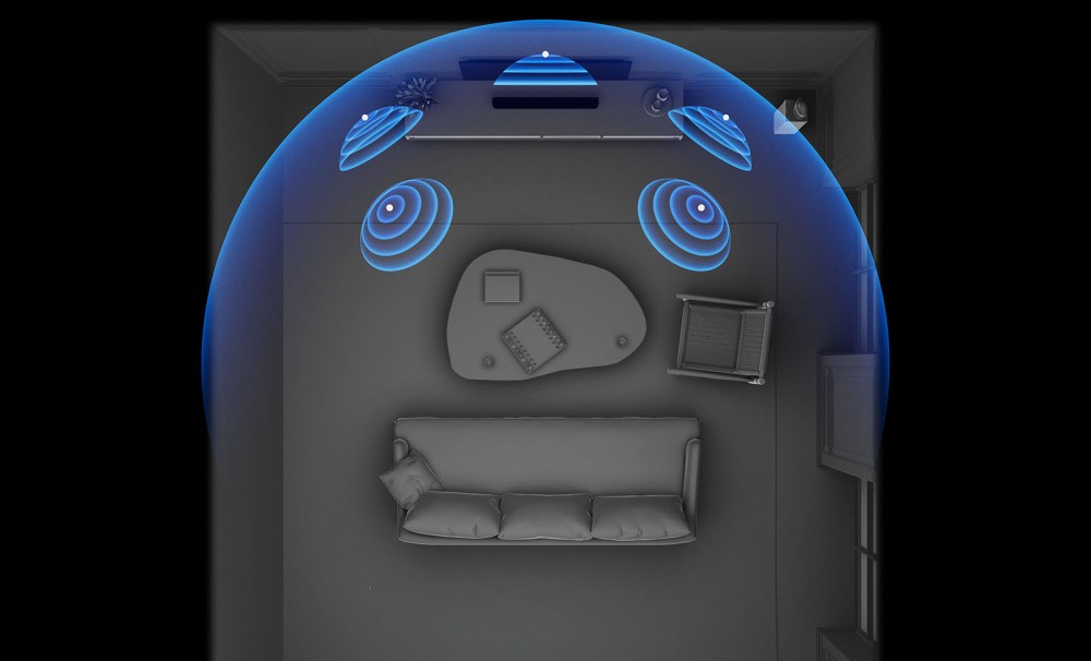 The presence of the 360 Spatial Sound Mapping process densifies the sound field: the bar is thus able to generate five phantom speakers (see illustration above), and the association with the Rear 9 rear speakers increases this number up to eleven for a 7.1.2 configuration (see illustration below). The immersive effect then gains in verticality and depth, to the point of rivaling much bulkier systems. The Sony Bravia Theatre Bar 7, Dolby Atmos, DTS:X and IMAX Enhanced for immersive sound. The Sony Bravia Theatre Bar 7 ticks all the boxes for a modern home cinema setup: Dolby Atmos, DTS:X, IMAX Enhanced certification, quick calibration via smartphone in ten seconds flat, and seamless integration with Bravia TVs thanks to the Voice Zoom 3 function and quick settings accessible from the TV screen. The design, too, has been conceived to integrate naturally under the 2026 models, with feet included to raise the bar if needed. The whole package creates a compact, premium solution for those who want serious immersion without multiple speakers. Daily management of the soundbar can also be done via the Bravia Connect app, which allows you to easily adjust the volume, sound profiles, and advanced settings from a smartphone.