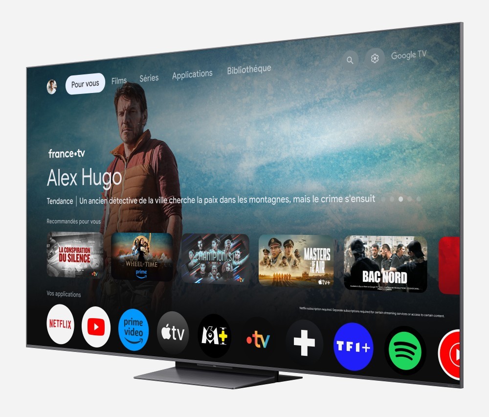 TCL C8L TV: Dolby Vision 2, Atmos FlexConnect, HDMI 2.1 and a 2.2.2 sound system by Bang & Olufsen. Among the other remarkable features of the TCL C8L TVs, we should mention a Virtually ZeroBorder screen (100% of the LCD panel is used for the image, but a metal frame is still present around the panel to reinforce the structure), a TSR AIPQ processor capable of autonomous machine learning, and the new Super Resolution video processing. 2.0, HDR10+ and HDR Dolby Vision compatibility (HDR Dolby Vision 2 expected this summer via update, HDR10+ Advanced still under discussion), Dolby Atmos FlexConnect compatibility, a native 144Hz LCD panel, four 2.1 144Hz inputs (finally! Thank goodness for the upcoming HDR Dolby Vision 2, which requires a Pentonic 800 chip capable of handling four HDMI 2.1 inputs…), plus a 2.2.2 sound system by Bang & Olufsen. All powered by Google TV, which will welcome Gemini this fall (updates guaranteed up to Android 17, i.e., for three years).
