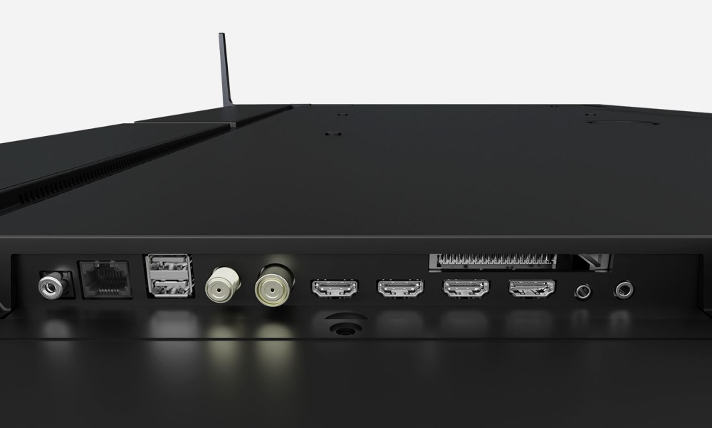• Dolby Vision IQ compatibility; • AV1 compatibility; • VP9 compatibility; • HDCP 2.3 compatibility; • FreeSync Premium Pro compatibility; • HDR10+ Adaptive compatibility; • Bluetooth 5.2 compatibility; • Wi-Fi 6 (ax) compatibility; • Chromecast (built-in) compatibility; • Inputs: 2 HDMI 2.1 inputs, 2 HDMI 2.0 inputs, 3 USB Host ports (1 USB 3.0), 1 stereo/AV 3.5 mm mini-jack, 1 CI+ slot and 1 Ethernet port; • Google TV Multimedia; • MEMC Motion Compensation; • Mini LED Local Dimming Backlight System; • Number of Zones: 448 on the 65", 512 on the 75" and 640 on the 85"