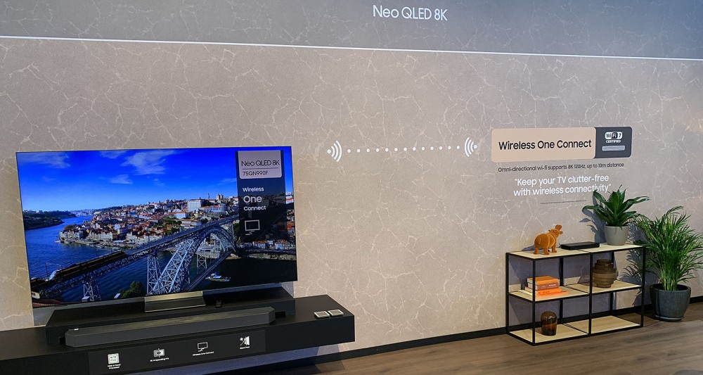 • Samsung TQ98QN990H (98'', 249 cm, Ultra HD 8K, HVA, Infinity Design, 165 Hz, NQ8 AI chip with 768 Deep Learning modules, Glare Free 3.0, HDR10+ Advanced, Wireless One Connect, 8K/120, 4K/240, Eclipsa Audio, Art Store, One UI), €29,999